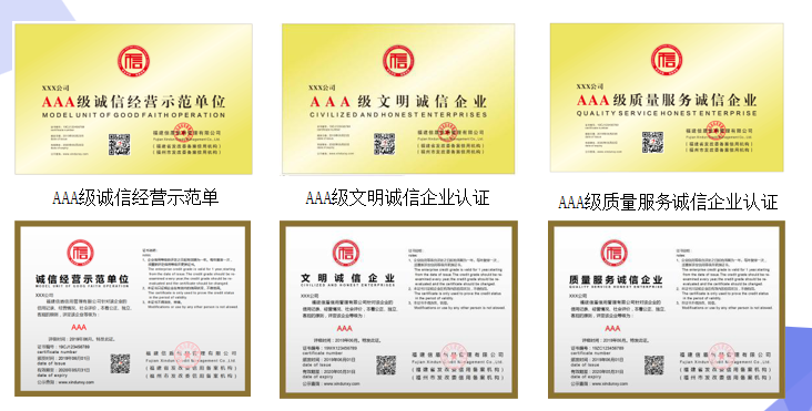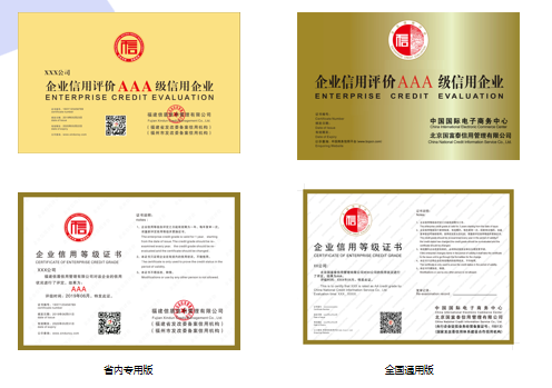 “中國誠信供應(yīng)商”認證:國際貿(mào)易類,在全國行業(yè)信用公共服務(wù)平臺、中國電子商務(wù)網(wǎng)、中國商務(wù)信用平臺權(quán)威公示。