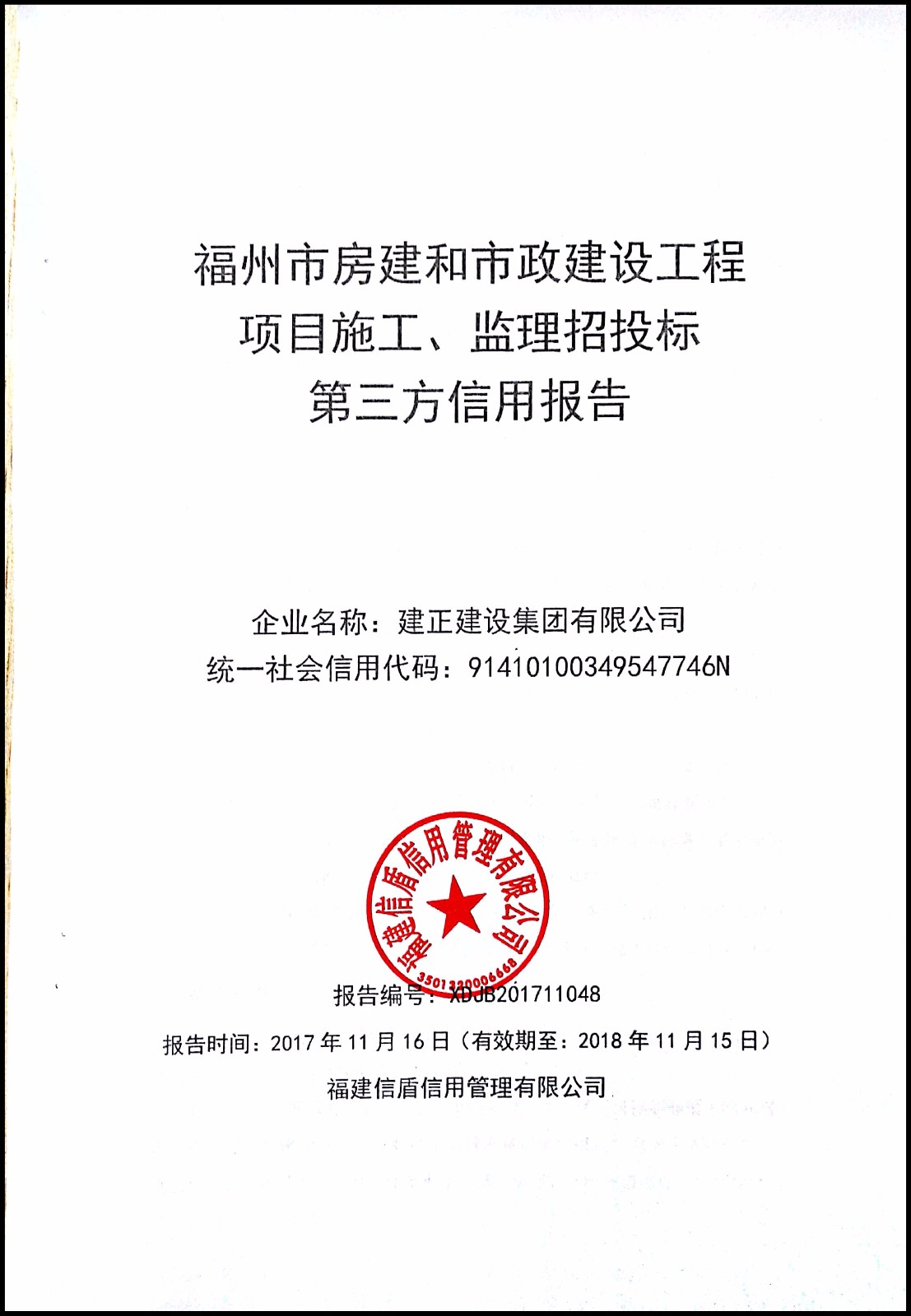建正建設集團有限公司 XDJB201711048