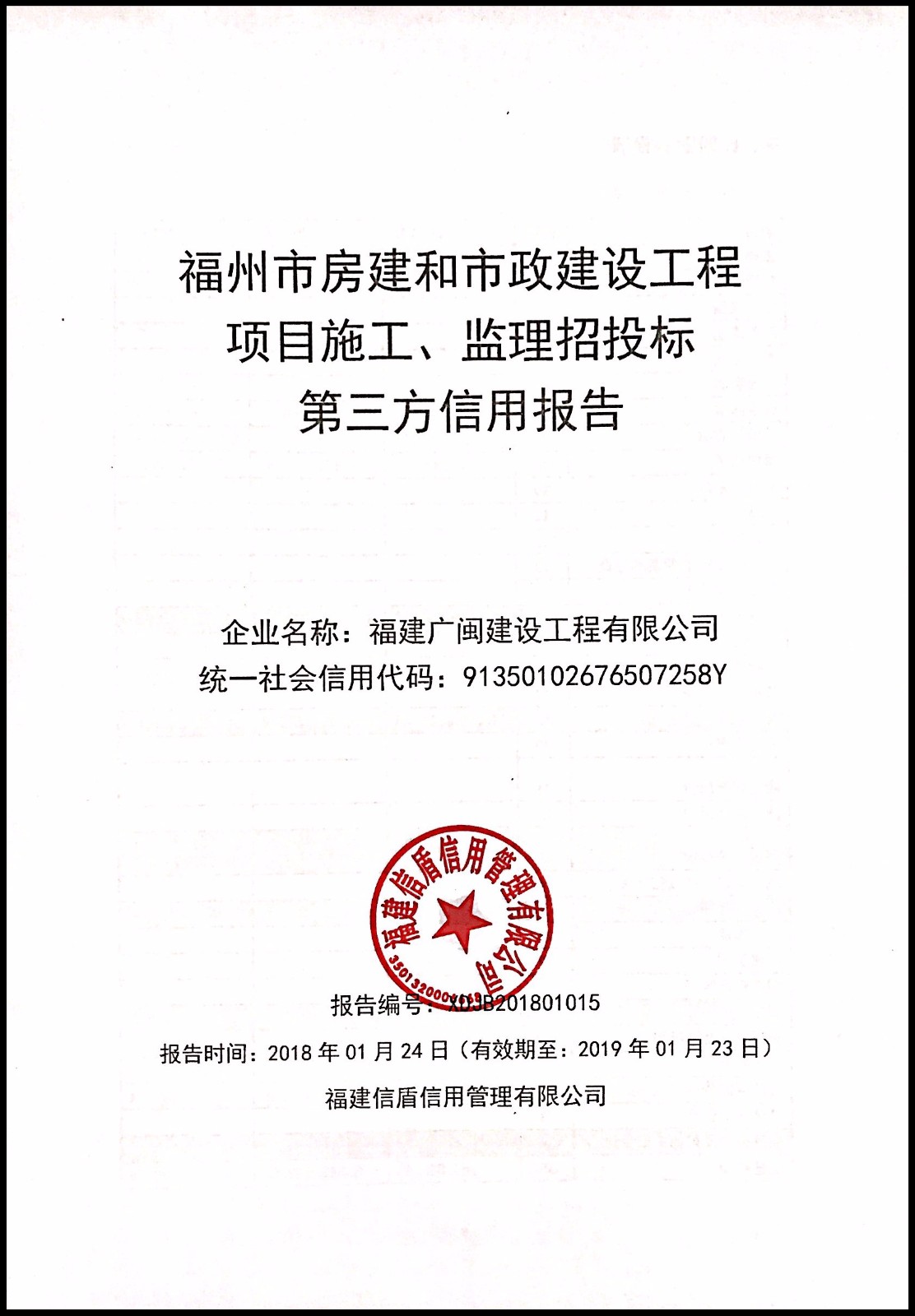 福建廣閩建設工程有限公司 XDJB201801015